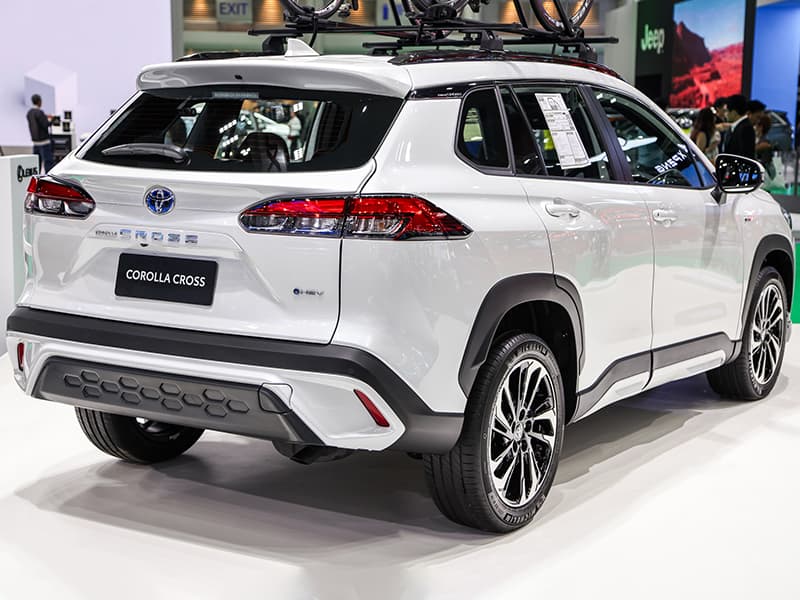 Với kích thước tổng thể 4.460 x 1.825 x 1.620 mm và chiều dài cơ sở 2.640 mm, thân xe Toyota Corolla Cross tạo cảm giác rộng rãi và thoải mái cho người sử dụng. Xe sử dụng lốp 18 inch, 5 chấu kép, giúp tăng tính ổn định và cân bằng khi di chuyển trên mọi địa hình.